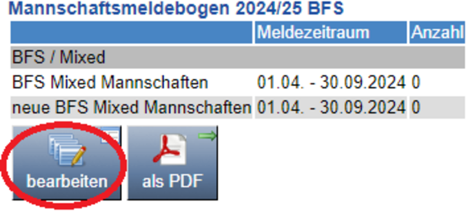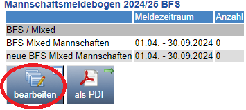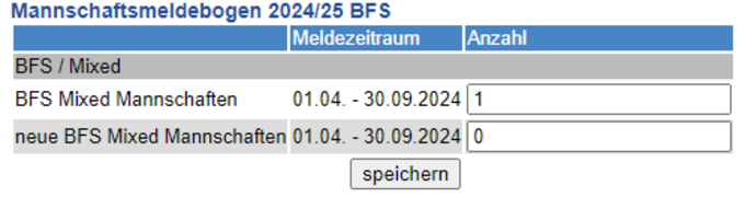 WICHTIG: Den Eintrag "neue BFS Mixed Mannschaften" bitte nur für wirklich neue Teams benutzen, die in der vorherigen Saison noch nicht gespielt haben. Neue Teams fangen automatisch in der niedrigsten Spielklasse an.