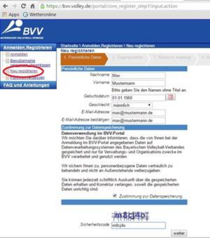 Für die Registrierung im BVV-Portal werden folgende Angaben benötigt: