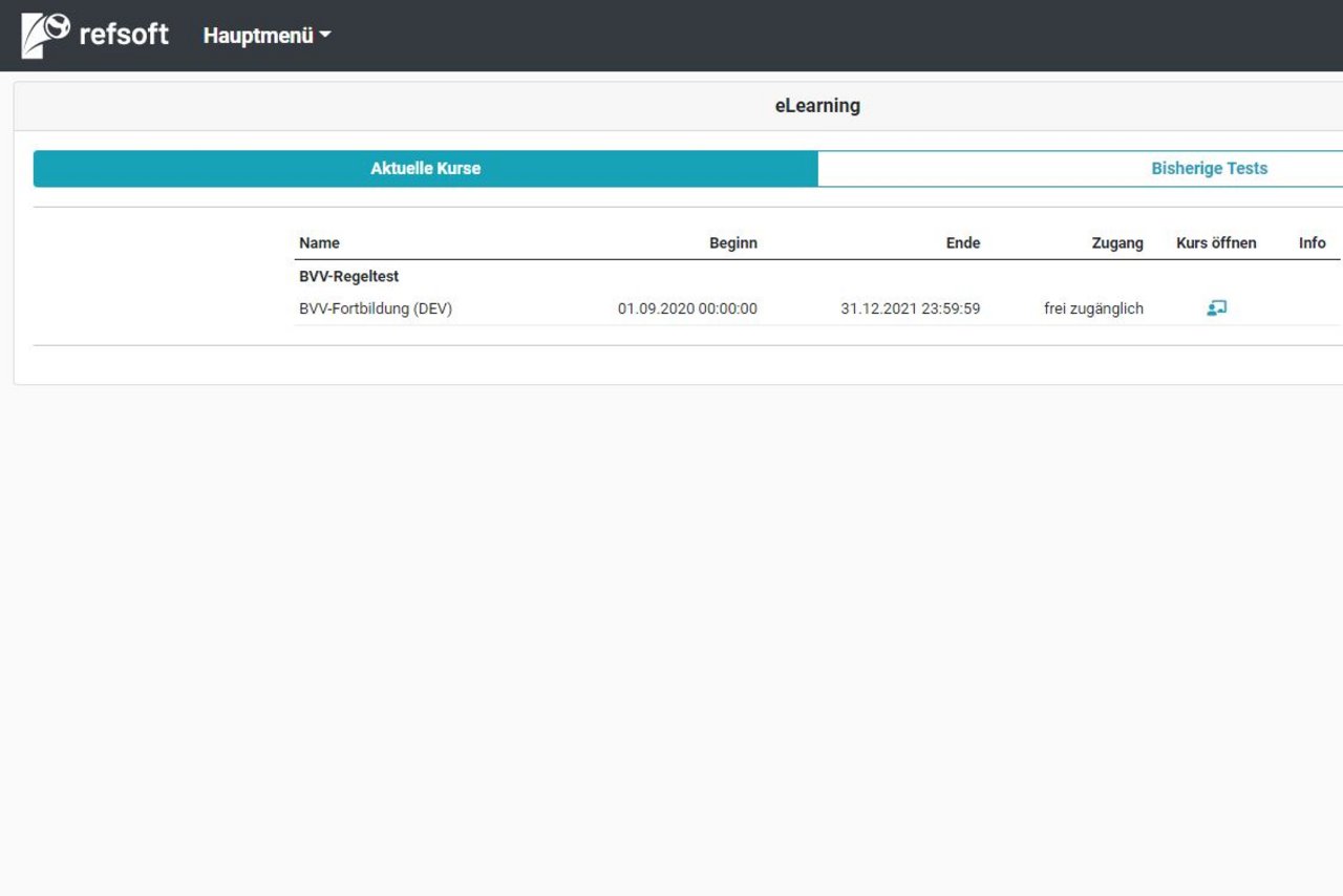 Die Online-Fortbildungen stellen einen Regeltest dar, der über "refsoft" (evtl. bekannt über Schiedsrichtereinsatzleitung) realisiert wird.